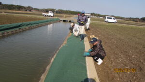 水路法面の防草シート設置作業のボランティアを募集します。