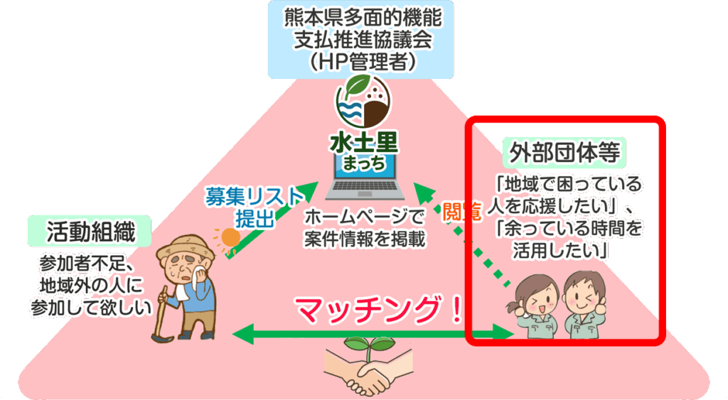この利用規約(以下,「本規約」といいます。)は,熊本県多面的機能支払推進協議会(以下,「当団体」といいます。)がこのウェブサイト上で提供するサービス(以下,「本サービス」といいます。)の利用条件を定めるものです。登録ユーザーの皆さま(以下,「ユーザー」といいます。)には,本規約に従って,本サービスをご利用いただきます。
